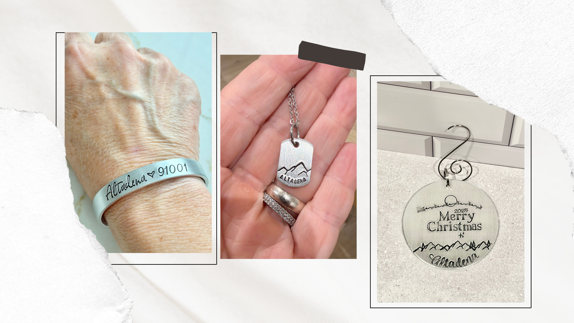 The Altadena Collection captures the essence of our foothill community, its rugged beauty, quiet strength, and deep sense of belonging. Inspired by the mountains, trails, trees, and the people who make this place home, each piece is handstamped with love as a small reminder of resilience, beauty, and the stories held in these hills. For those of us finding our way back, these pieces honor where we have been and the home we are rebuilding.